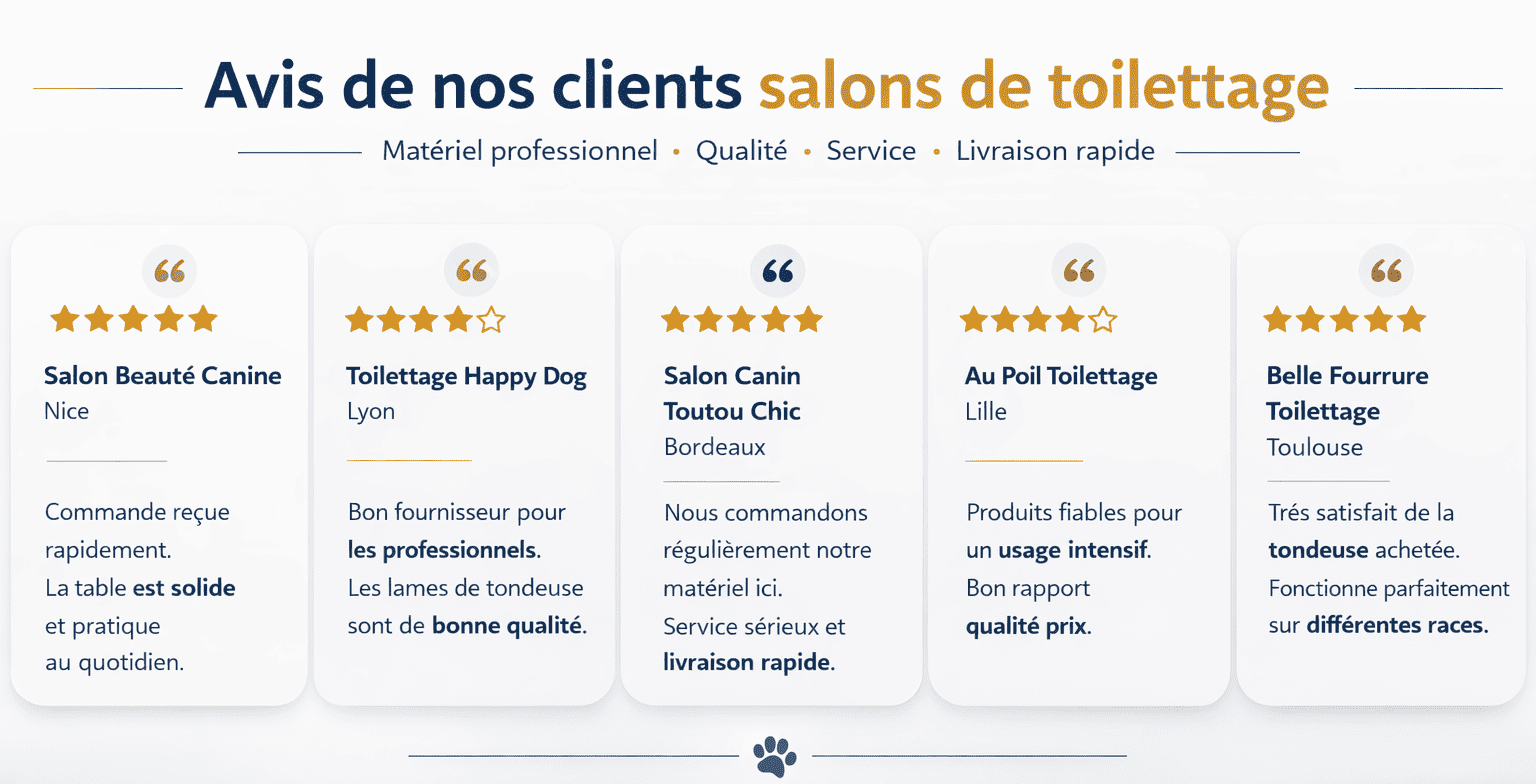 Materiel poursalon de toilettage PROFESSIONNELS .Payez en 4 fois sans frais avec PayPal Fournisseur de matériel professionnel pour salons de toilettage – NSDA FRANCE![]() Top rapport qualité/prix en matériel de toilettage professionnel : tables, baignoires, séchoirs, tondeuses & accessoires pour toiletteurs![]() Tout l’équipement nécessaire pour ouvrir ou moderniser votre salon de toilettageMORGAN soins de toilettageUtilisé par les toiletteurs professionnels ! Shampooings, parfums, et démêlants, MORGAN, une gamme complète de produits d'hygiène et de cosmétique développée par NSDA FRANCE pour répondre aux besoins spécifiques de la peau et des poils des chiens et chats ainsi qu'aux exigences des toiletteurs. Fabriqué en France avec des ingrédients rigoureusement sélectionnés Le meilleur du Matériel de Toilettage pour Professionnel![]() ![]() NSDA affutage, aiguillage & réparation de tondeuses Affûtage de têtes de coupe, aiguillage ciseaux toutes marques pour les professionnels du toilettage. Avec 30 années d'expérience et des milliers de têtes de coupe et ciseaux affûtés et aiguisés, NSDA FRANCE a acquis une expérience incomparable dans l'affûtage de vos peignes de tondeuses et l'aiguillage de vos ciseaux. Également nous réparons les tondeuses de marques Aesculap, Oster, Andis et MOSER. ![]() NSDA produits antiparasitaires et vétérinaires NSDA France vous donne la possibilité de vendre dans votre salon de toilettage ou magasin animalerie des produits à usages antiparasitaire et vétérinaire ( FRONTLINE, ADVANTIX, SERESTO, SCALIBOR, OTOLANE, OCRYL et bien d'autres...). Les commandes sont facturées et livrées par un laboratoire agréé. Téléchargez la tarification dans le menu ''Produits vétérinaires''. Grossiste pour animalerie & Prodepuis plus de 30 ans Service Client Fournisseur pro La Qualité NSDA Une clientèle variée Un service client adapté à des professionnels et des animaleriesNous vous proposons un service client disponible aussi bien par téléphone que par e-mail. N'hésitez pas à nous contacter en cas de besoin ou de devis, nous serons très heureux de vous accompagner dans vos démarches. Service client04 94 96 94 55 Le grossiste d'animalerie adapté aux professionnels et aux particuliers exigeants !NSDA FRANCE grossiste et fabricant spécialisé dans la vente de matériels professionnels, produits et articles pour chiens et chats. Implanté sur le plan national, nous travaillons avec les salons de toilettage, éleveurs, boutiques animaleries et vétérinaires. Nous mettons un point d'honneur à proposer à nos clients une offre complète de produits répondants à leurs besoins. Notre catalogue réunit donc de nombreux articles spécialisés. Du Matériel de Toilettage Canin et Félin de qualitéChez NSDA, nous tenons à vous proposer des produits de qualité qui répondent vraiment aux besoins des animaux. Nos produits se distinguent pour deux raisons :